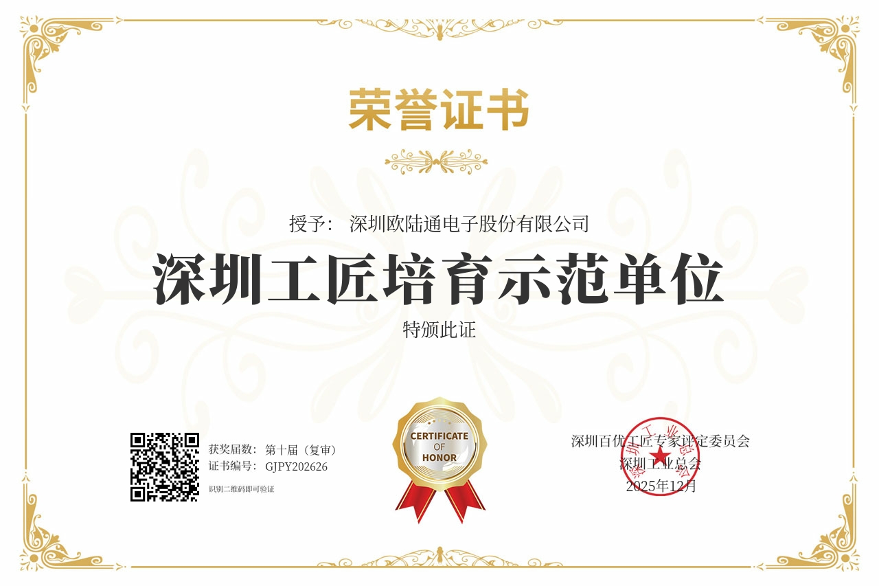 憑借在技術(shù)創(chuàng)新、區(qū)域產(chǎn)業(yè)引領(lǐng)、社會(huì)責(zé)任踐行等維度的綜合表現(xiàn),歐陸通一舉斬獲九項(xiàng)大獎(jiǎng)。歐陸通入選“2025粵港澳大灣區(qū)企業(yè)創(chuàng)新力榜單-創(chuàng)新成就榜”,榮獲“深圳工匠培育示范單位”、“2025年度履行社會(huì)責(zé)任杰出企業(yè)”、“第二十四屆深圳企業(yè)創(chuàng)新紀(jì)錄-自主創(chuàng)新標(biāo)桿企業(yè)”獎(jiǎng)以及兩項(xiàng)“第二十四屆深圳企業(yè)創(chuàng)新(中國)紀(jì)錄”;歐陸通董事長(zhǎng)兼總經(jīng)理王合球先生,榮獲“2025年度履行社會(huì)責(zé)任杰出人物”;歐陸通副董事長(zhǎng)王越天先生,入選“2025粵港澳大灣區(qū)企業(yè)創(chuàng)新力榜單-創(chuàng)新杰出人物榜”,榮獲“第二十四屆深圳企業(yè)創(chuàng)新紀(jì)錄-創(chuàng)新突出貢獻(xiàn)人物”。
